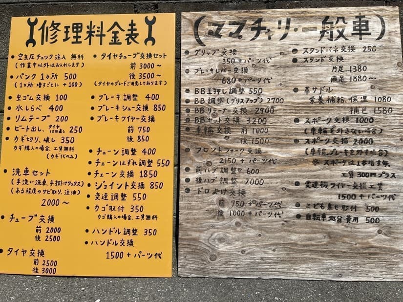 自転車修理料金表