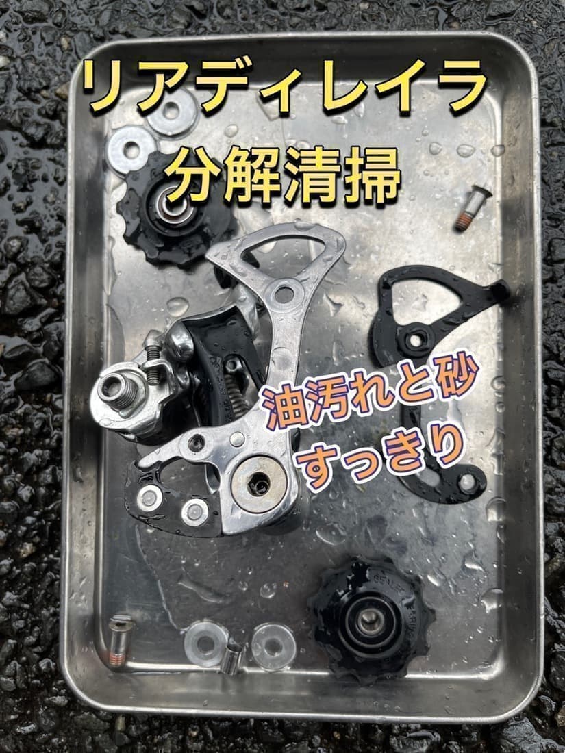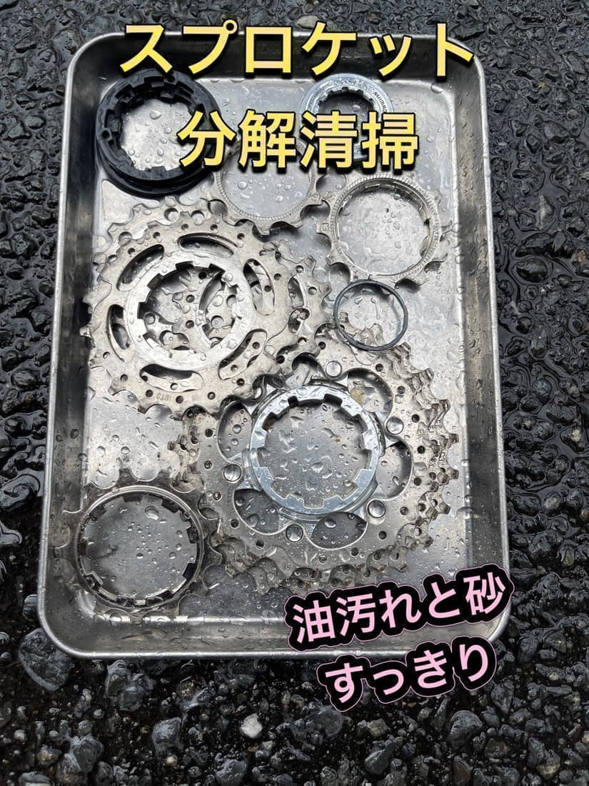 ・洗車 (カルラバロウ(撥水 + ツヤ出しコーティーングのWAXコーティーング付き) + チェーン清掃 + スプロケ清掃 + プーリー分解清掃 + BB清掃 + ヘッド分解清掃 + ブレーキ本体清掃